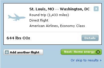 So how much does it cost to offset your trip? I’ll be taking my first (but I’m afraid not my only) flight of 2010 this coming Tuesday. I used the calculator at TerraPass to check on the carbon emissions of my flight from StL to DC. I found the calculator easy to use and surprisingly informative.