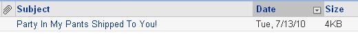 But? Not spam! That’s a real email subject line, folks. It’s in the running for my “best non-spam subject line ever” award. And who wouldn’t want to have a “Party in My Pants” shipped to them?