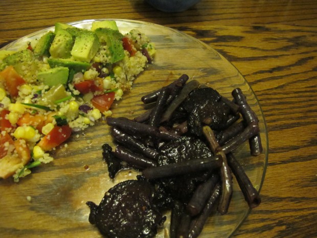 Start with lightly steamed beans and roasted beets.  Toss together with olive oil, a good balsamic, and s&p.