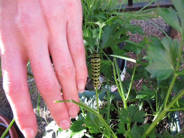 Matthew associates parsley with caterpillars, and I finally understand the connection. While I don’t think that parsley tastes like caterpillar, caterpillars certainly find parsley tasty.