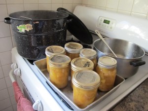 I don’t know how many apples I started with (a lot!) but it cooked down to exactly 7 pints, which I processed in a water bath. Handling the canning by myself was enough work without photographing the process. I also intended to add cinnamon to some of the jars, but forgot amid the mild chaos.
