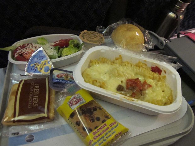 Between the ridiculous amount of plastic waste involved and the uninspiring food, we passed on the meals altogether on the return flight, opting instead for the pizza we purchased the night before.