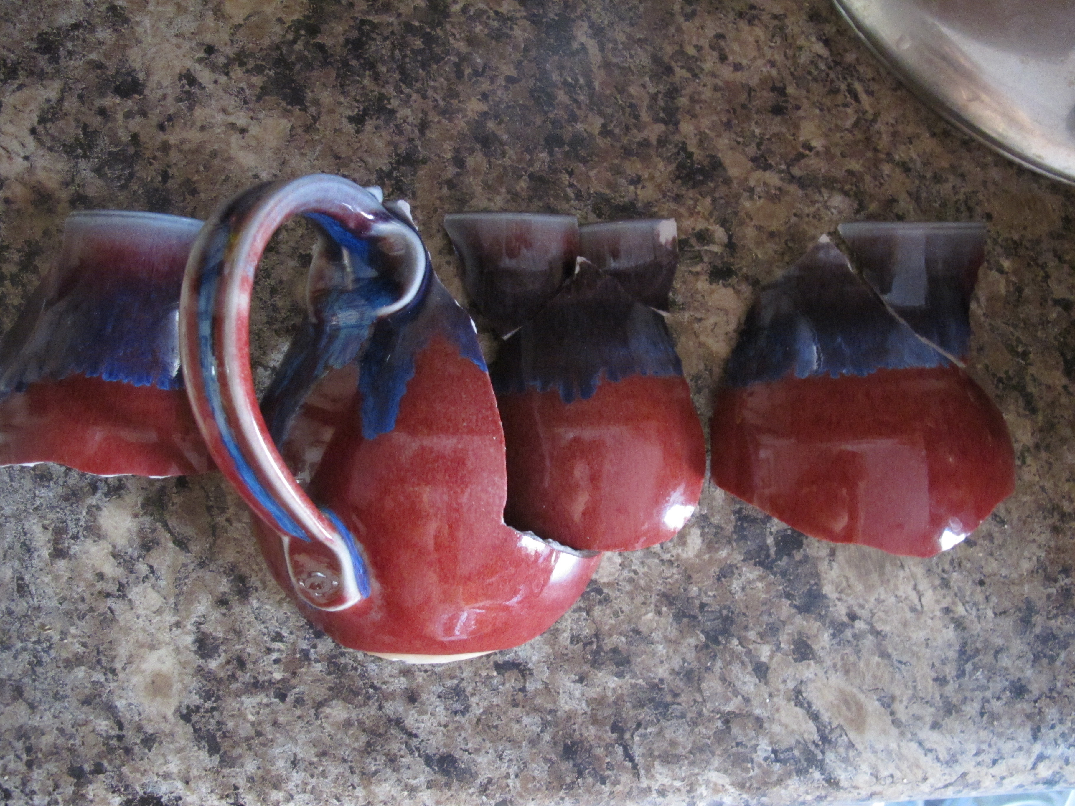 The thing is, we knew that using the mugs meant an increased chance of breaking the mugs. Instead of sitting in the cabinet, collecting dust, we enjoyed this piece of art every day for over five years. The one intact mug remains in daily use, though it is a bit lonely without its mate.