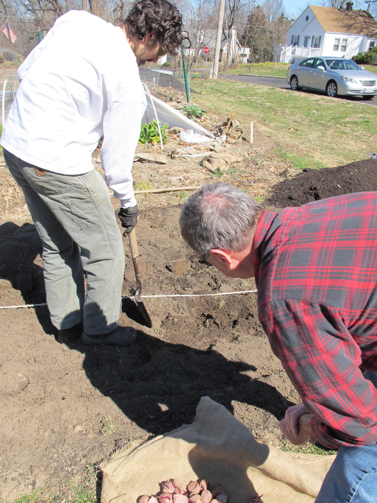 Gardening lore says that you should plant potatoes on St. Patrick’s day. Matthew planted exactly one week early this year.