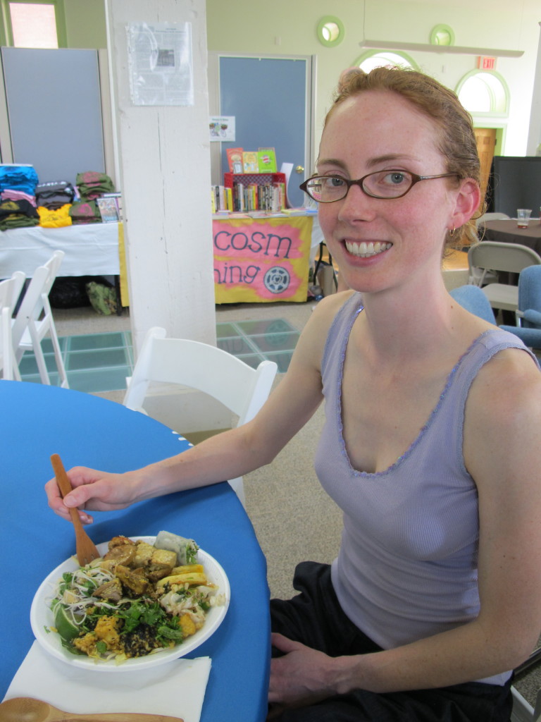 Matthew and I agreed that our top two dishes were the coconut tofu with plantain (three o’clock position in above photo) and the eggplant with shitake mushroom (middle of plate). My compliments to The Touring Vegan Chef, AKA Joshua Ploeg, for a tasty meal.