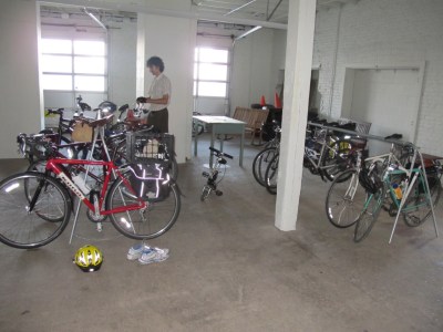 On our way there, I questioned how many attendees* would actually be biking to “Dinner & Bikes,” given the off-the-beaten-path location and the heat. Unfortunately, the pessimist in me was correct — the indoor bicycle parking was sadly underutilized.