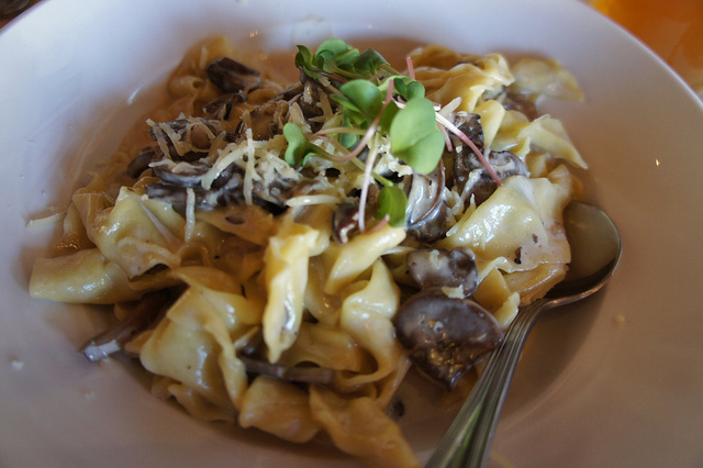 Pam and Rachel shared the wild mushroom stroganoff. Matthew tried a bite, and proclaimed it the best stroganoff ever, with lots of mushroom flavor — we plan to return soon and order this dish ourselves.
