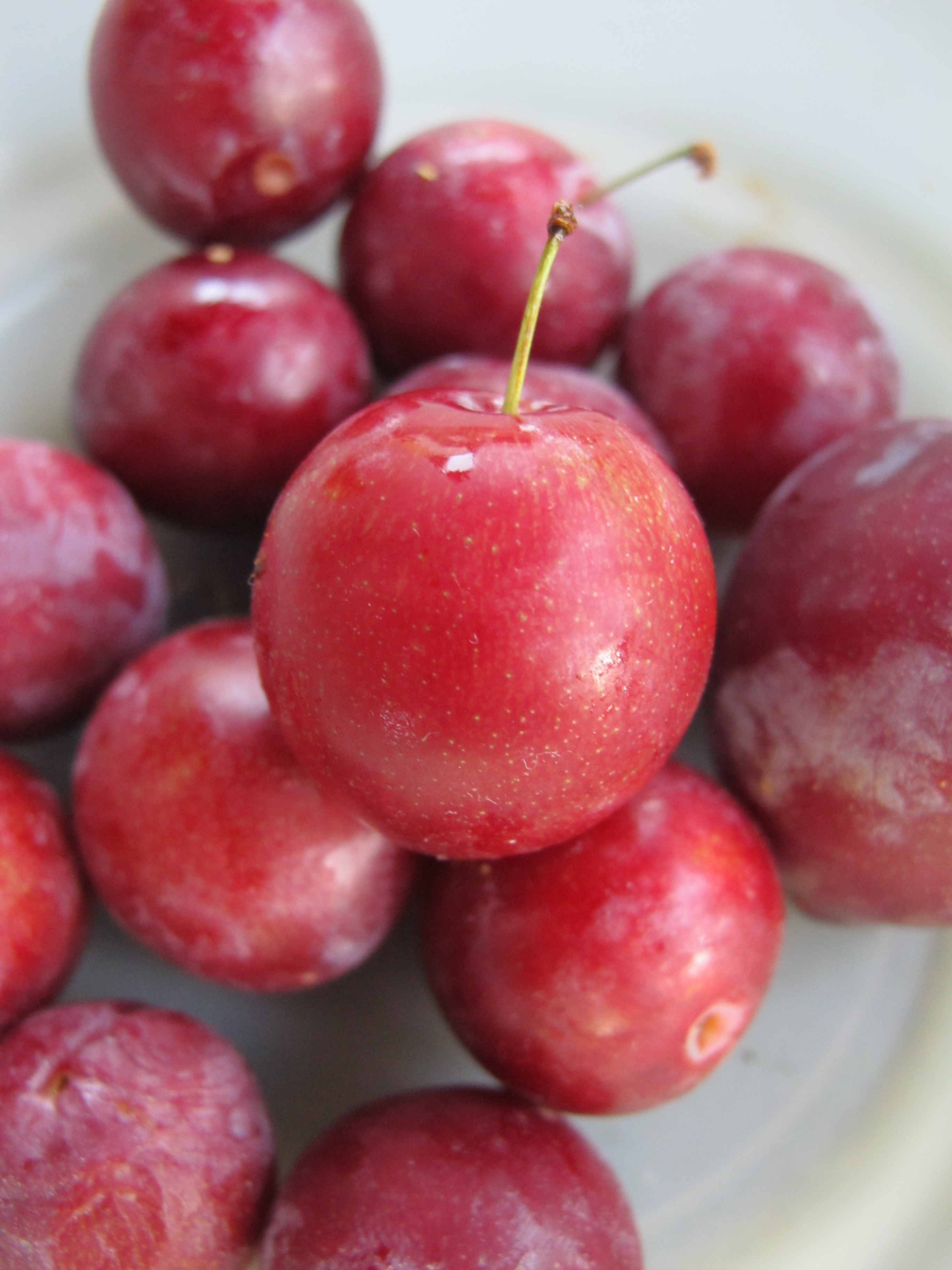 This variety of plum is very tiny, perhaps a bit larger than a big cherry. Small and delicious!