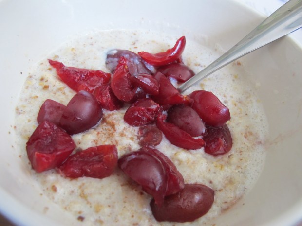 The plum trees at my MIL’s have yielded a bumper crop this year, and, while cutting the flesh away from the pit is a bit of a pain, they contribute to a delicious bowl of oatmeal.