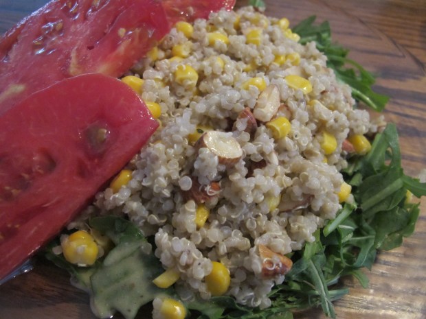 We enjoyed it pure and simple, with some salt and a drizzle of olive oil.  It served as the perfect addition to our meal of quinoa salad and . . .