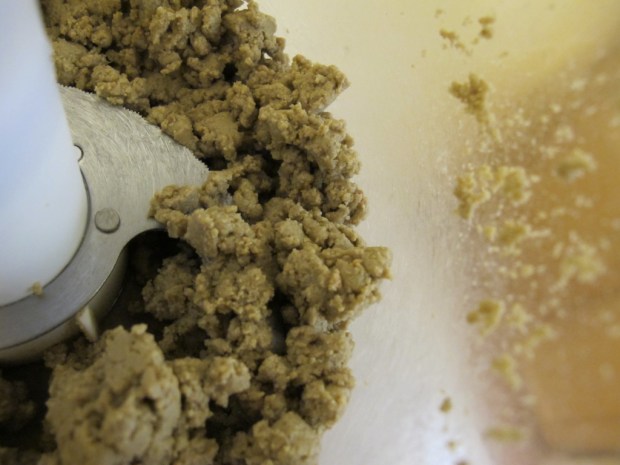Once you have a doughy, thick nut butter consistency, drizzle in some oil while the food processor is running. I didn’t really measure, but I think I used about two tablespoons.