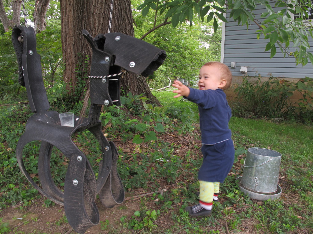 Now that Gabriel’s walking, he’s ready to take a more active role in the garden.  I’ll let him take over the narration.  First, there’s horseback riding.