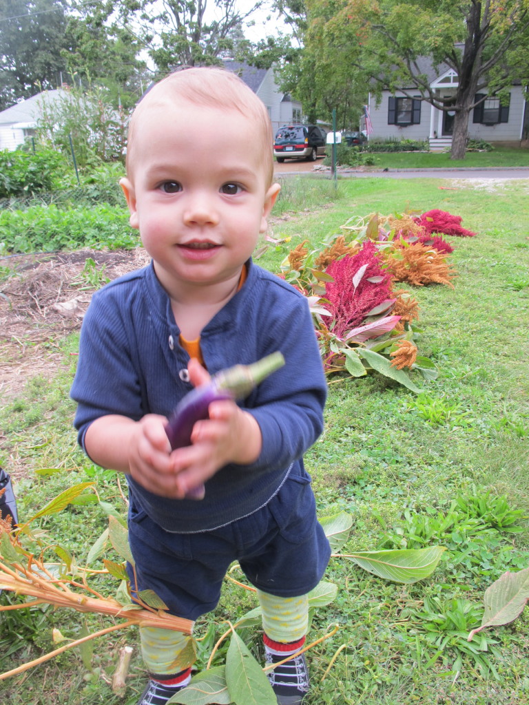 The amaranth looks good, but those fingerling potatoes aren’t going to dig themselves, Dada.  And what about the eggplant?  Your water break is over!