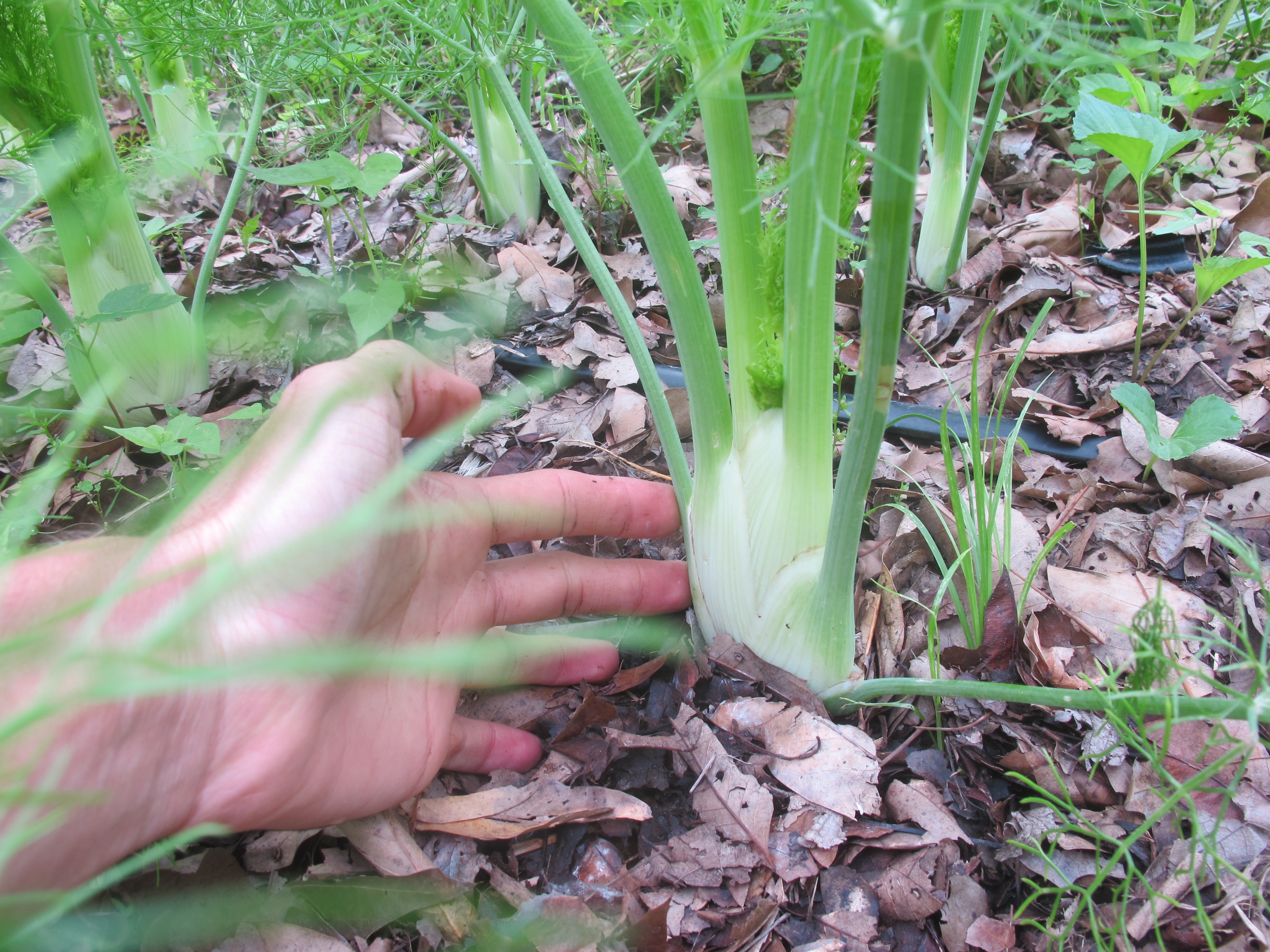 We’ve been harvesting fennel, including some for sale to Five.  We roasted most of the fennel the last two years, but I’m experimenting with very thin slices for use in salads this time around.