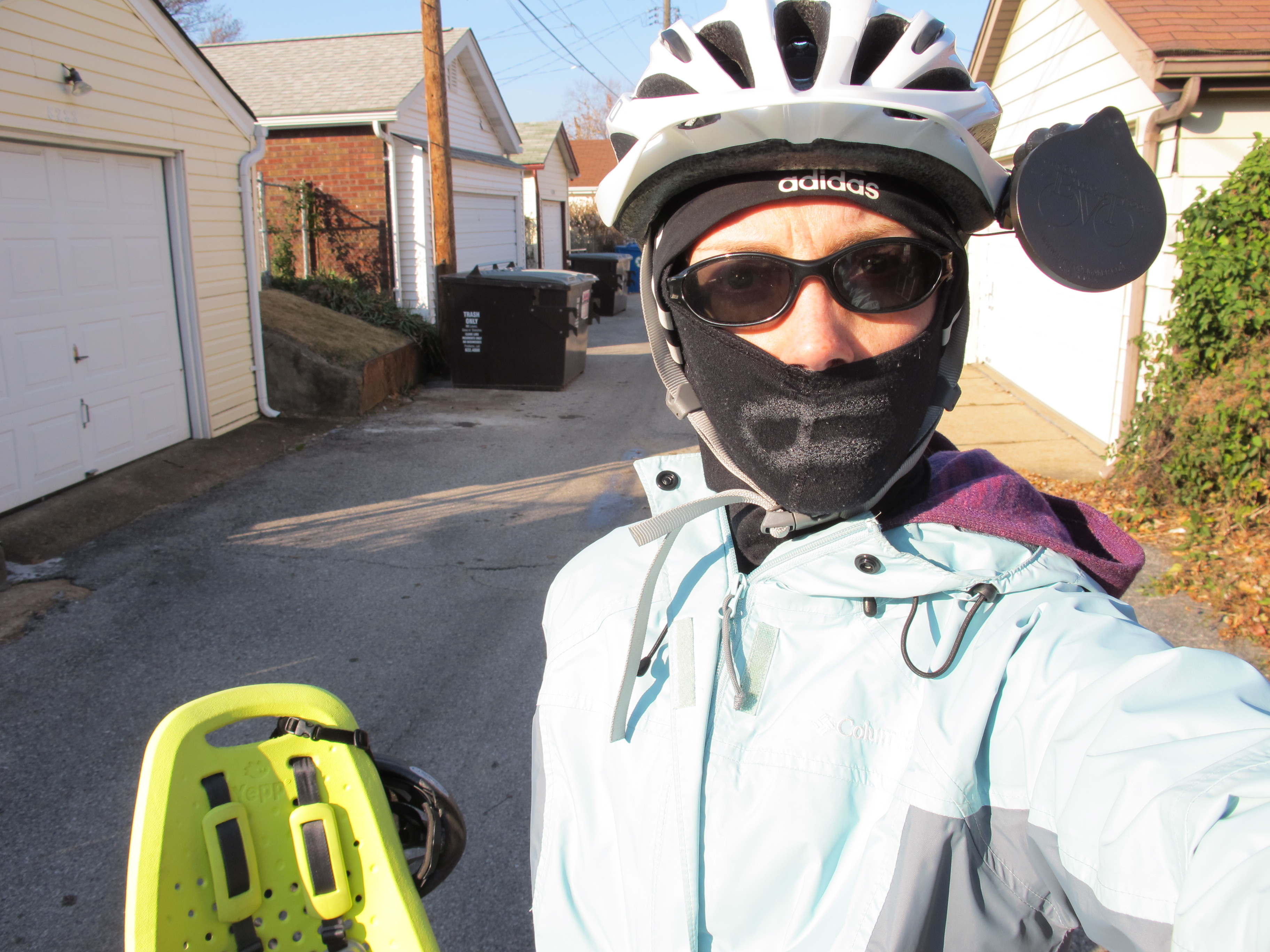 Today’s outing definitely counted as cold-weather biking (~20°F, with a slightly cooler wind chill).  We bundled into our layers.