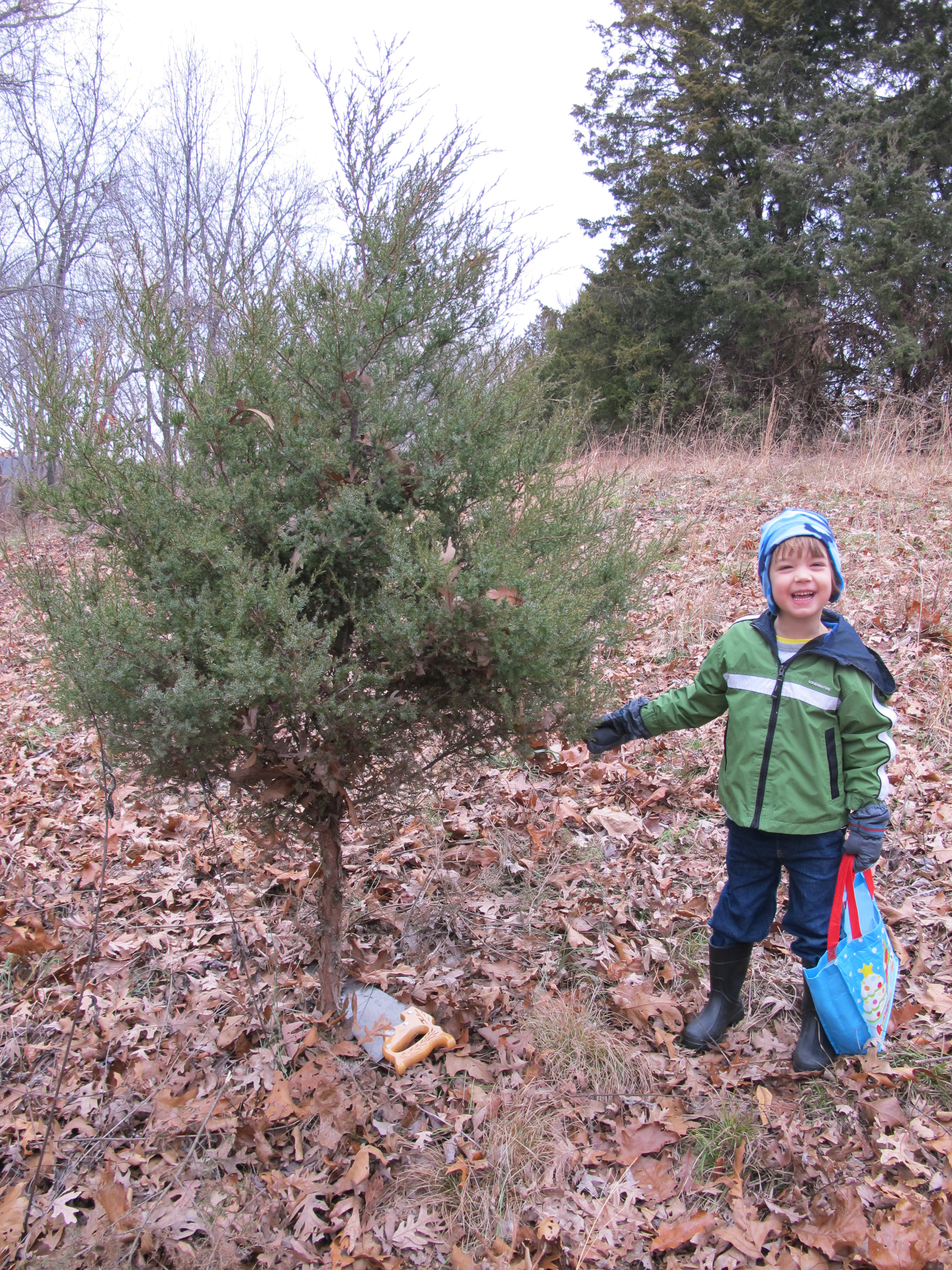 On Saturday afternoon, Matthew and Gabriel headed out to PaPa’s (Matthew’s grandpa) to cut a field tree (i.e., a tree growing in an unmowed field where it would eventually be cut down anyway). These field cedars are not what you find at a tree lot (or a Christmas tree farm — we saw lots of those in Oregon!).