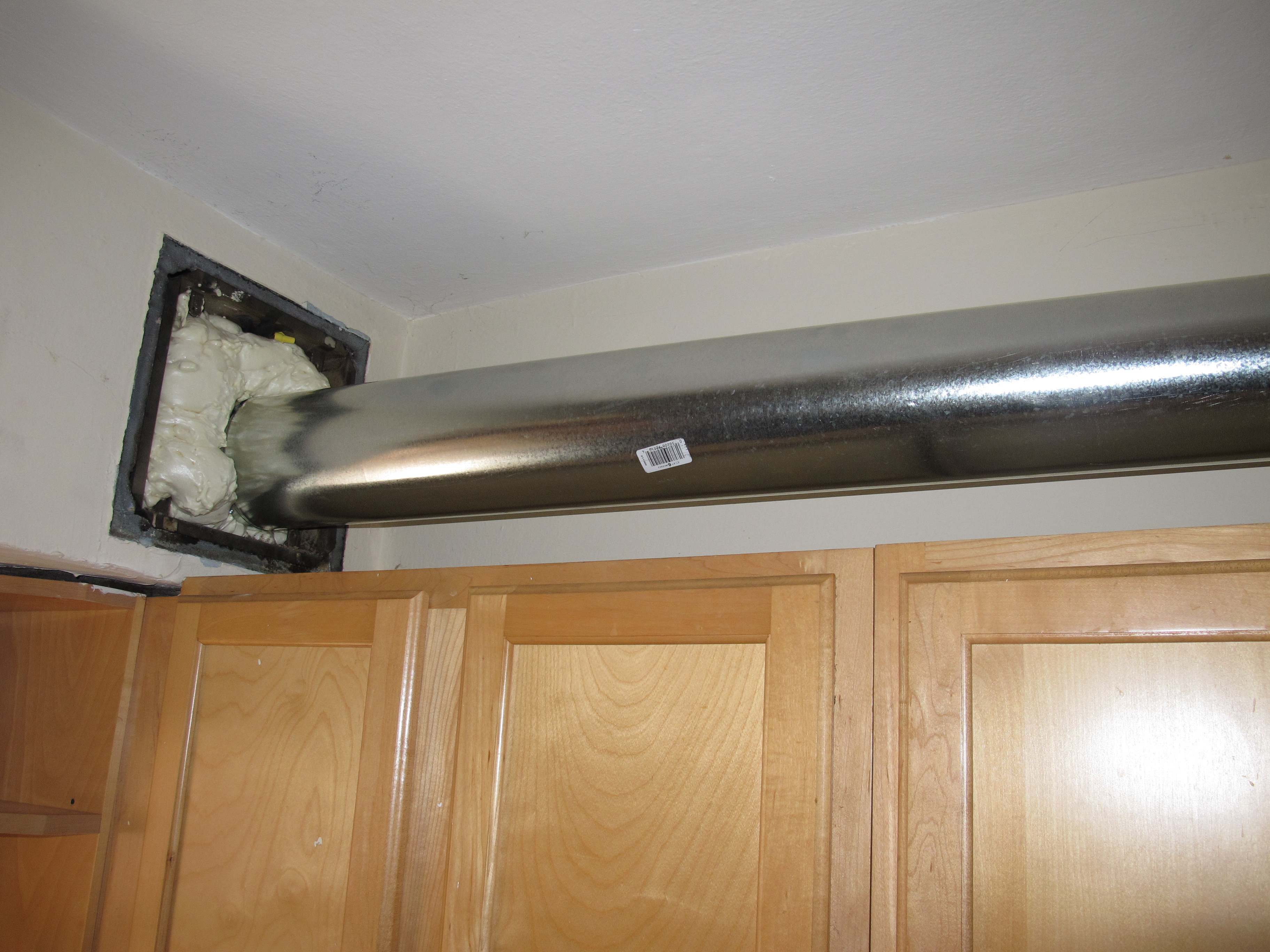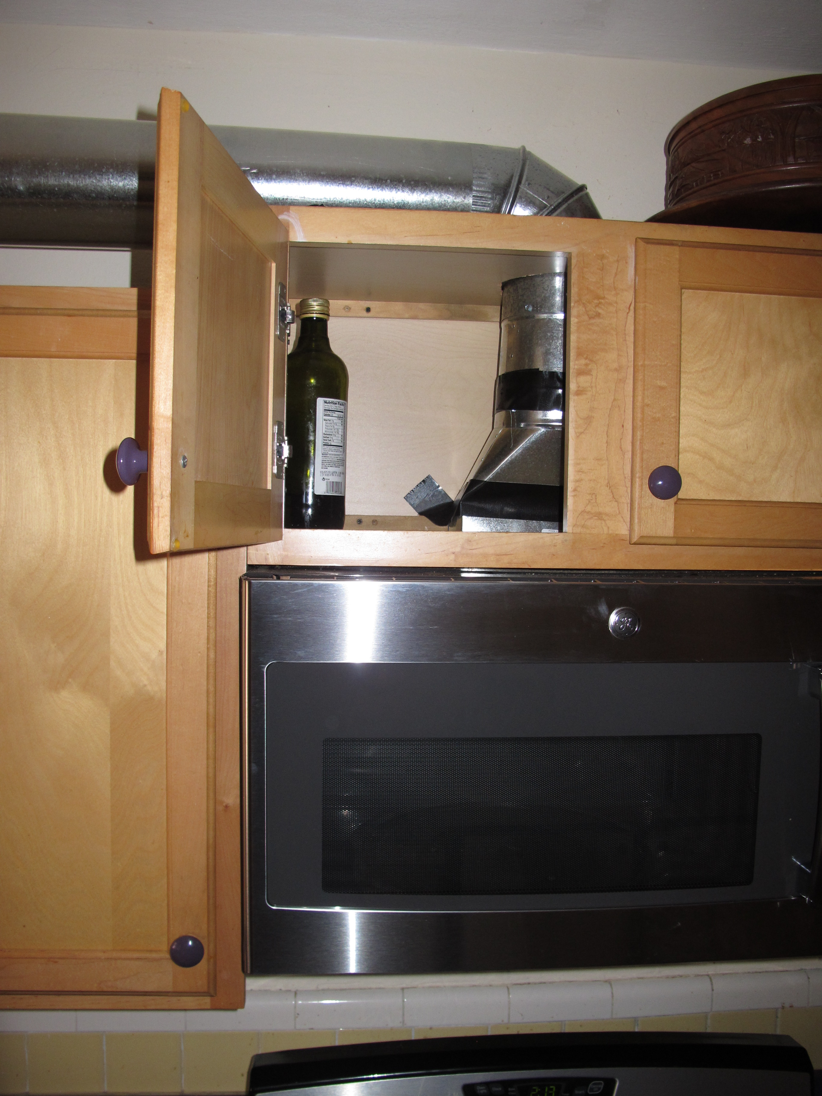 Step 3: Duct work for external venting. This required that we lose a little bit of actual cabinet storage space, as well as the above-cabinet space that we’d been using to store some larger kitchen items. Storage space in the kitchen is a premium, but this was worth the trade.
