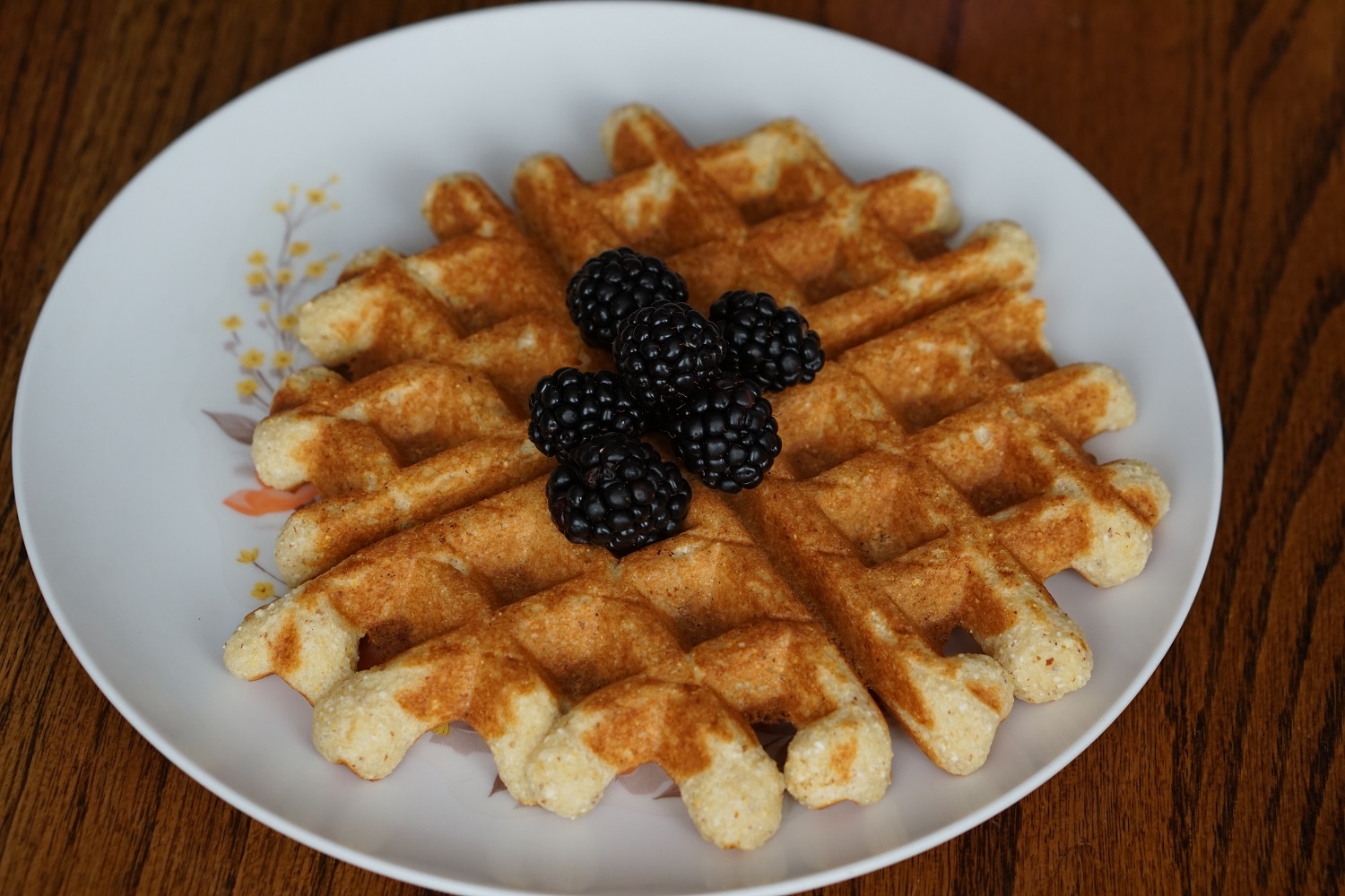 We make big batches and freeze them to enjoy over a few weeks. To freeze, place thoroughly cooled waffles in freezer bags.