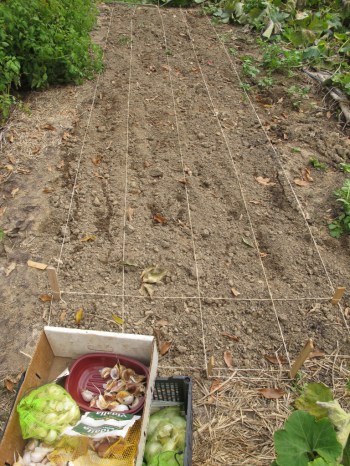 But wait. My “Main Crop” tends to have only 4-6 huge cloves, while Inchilium Red has 8-10 plantable cloves per bulb.* For a fair comparison, I needed to know the number of bulbs, and the weight, that had to be devoted to replanting the same amount for next year. I needed more data.