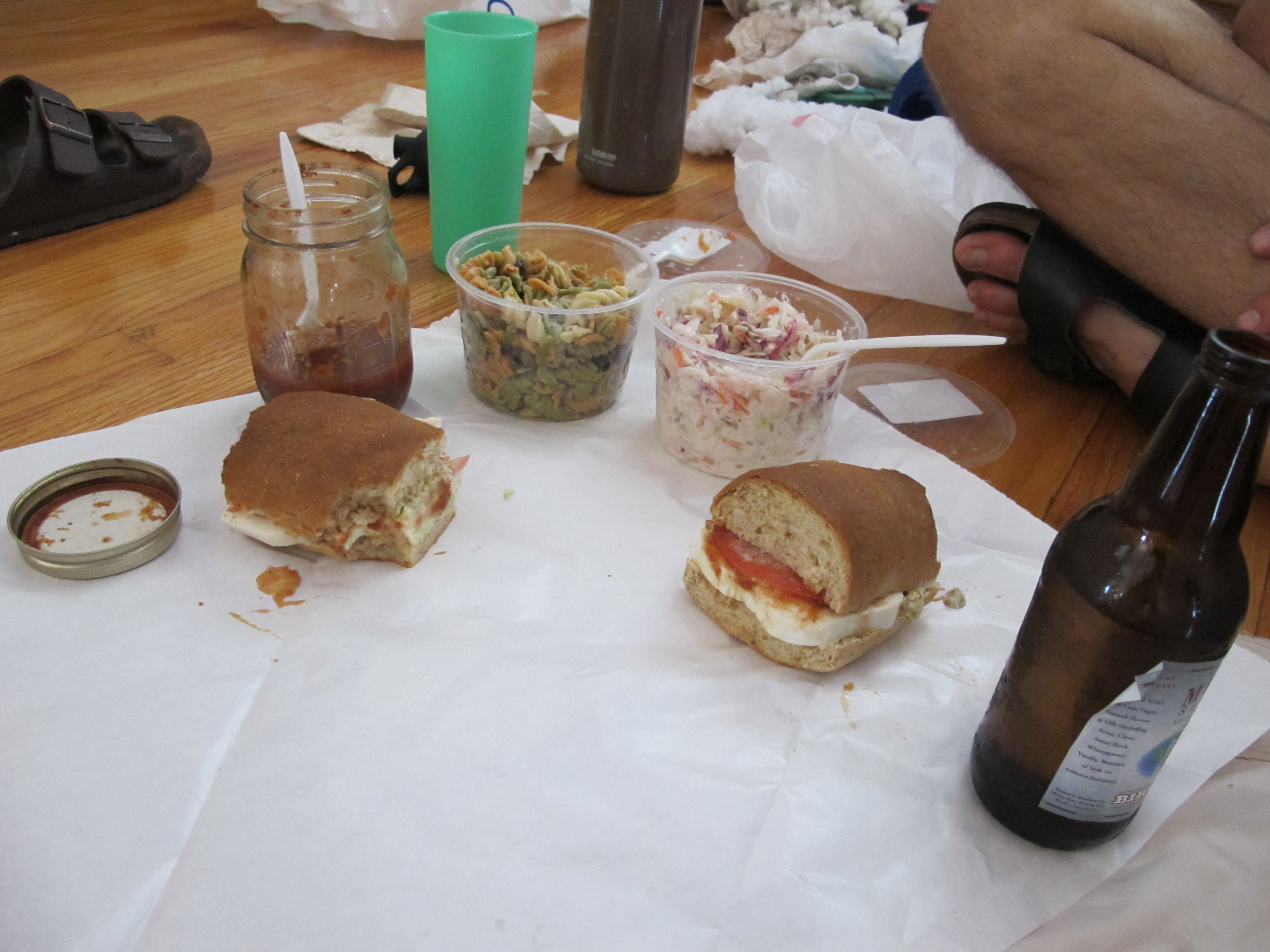 All bets were off on Monday, our actual moving day. When lunch rolled around, we’d been up packing and moving for hours. I picked up some sandwiches and deli-case salads at a nice little deli within walking distance of our new place.
