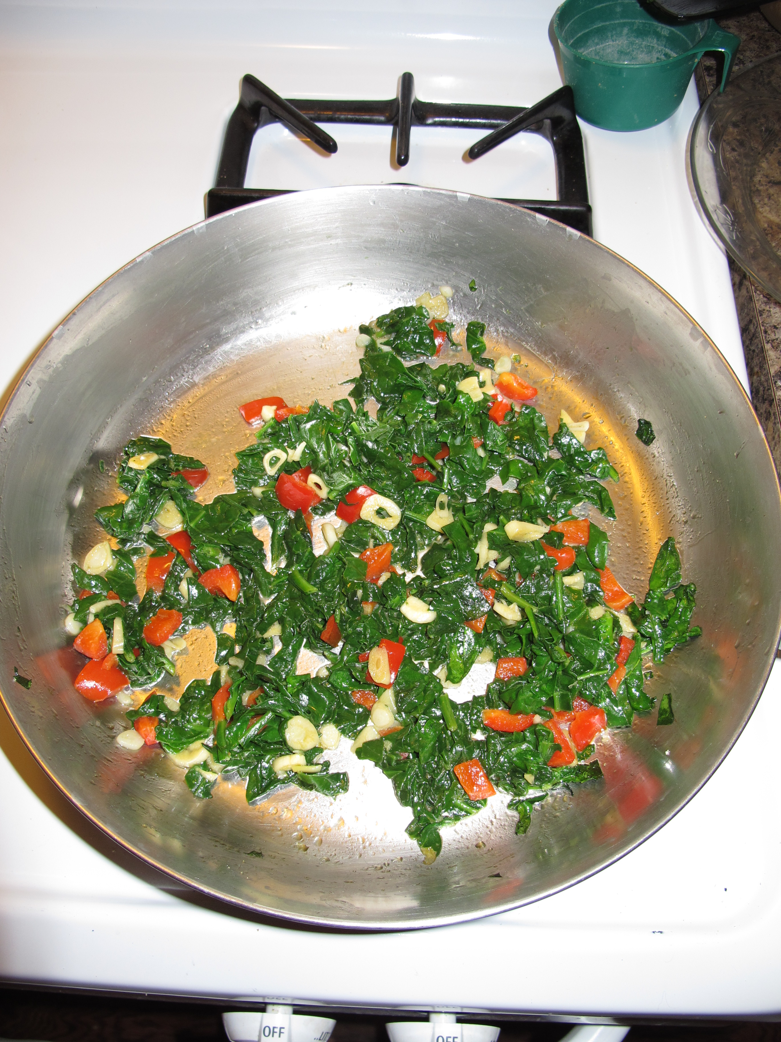 - Spinach, garlic, and red bell pepper, sauteed in butter and olive oil (pictured below)