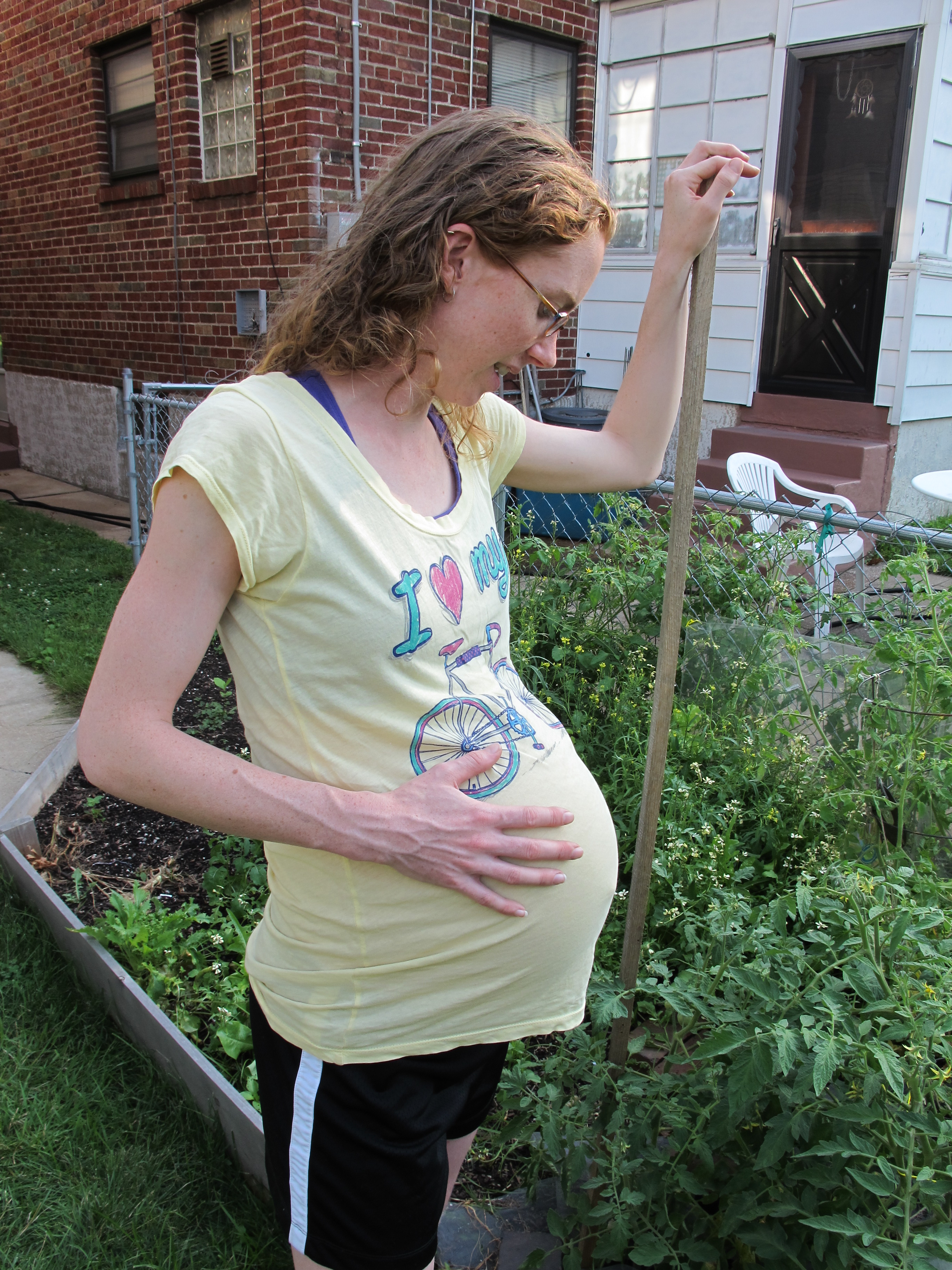 What’s missing in this picture? If you guessed “feet,” you’re right! Despite their extra large size, due to swelling, my belly still manages to completely obscure my feet.