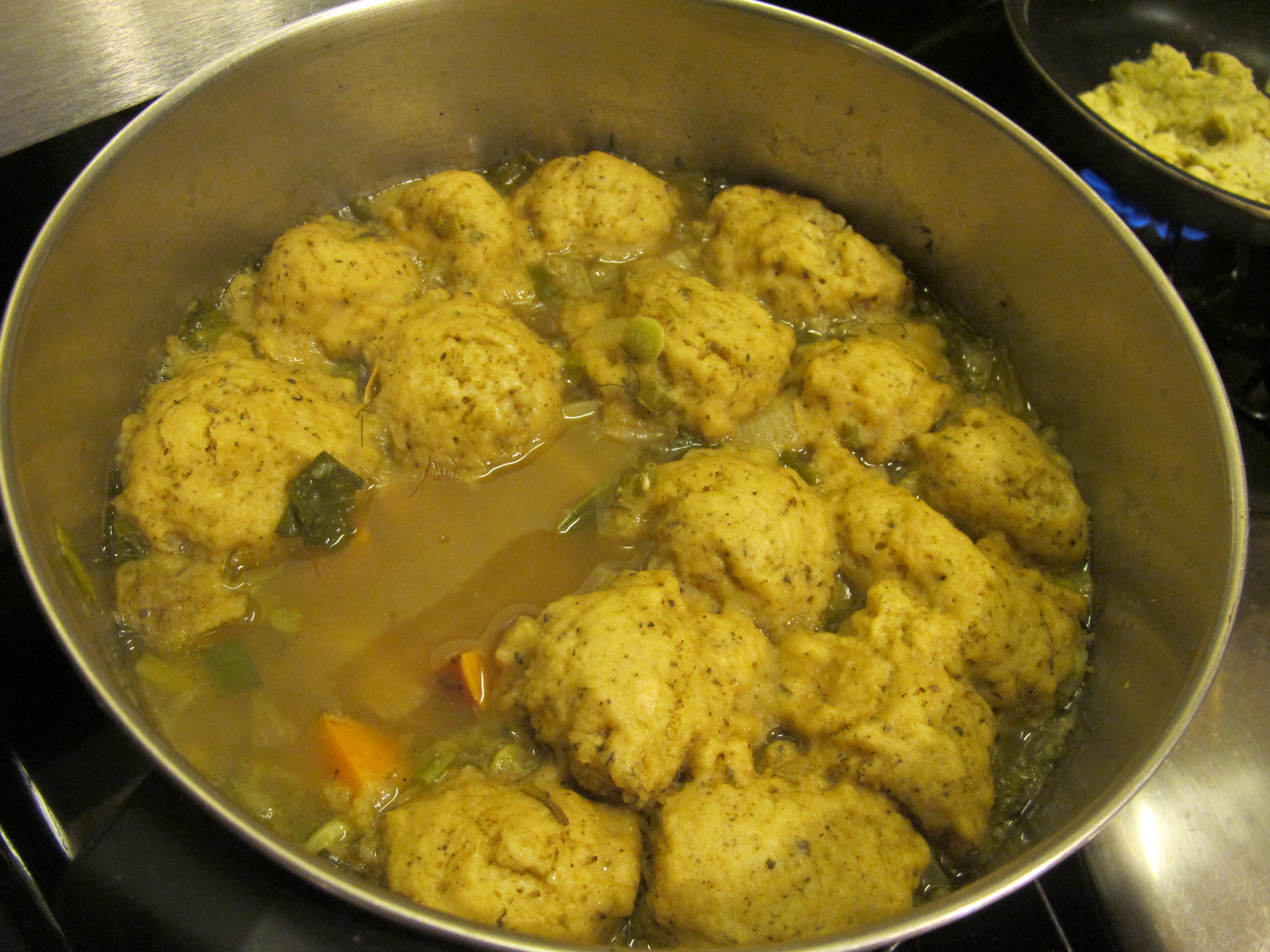 As usual, I didn’t follow the recipe too closely: whole wheat pastry flour and butter for the dumplings, and lots of variations when it came to the soup/stew, but that’s the beauty of a soup.