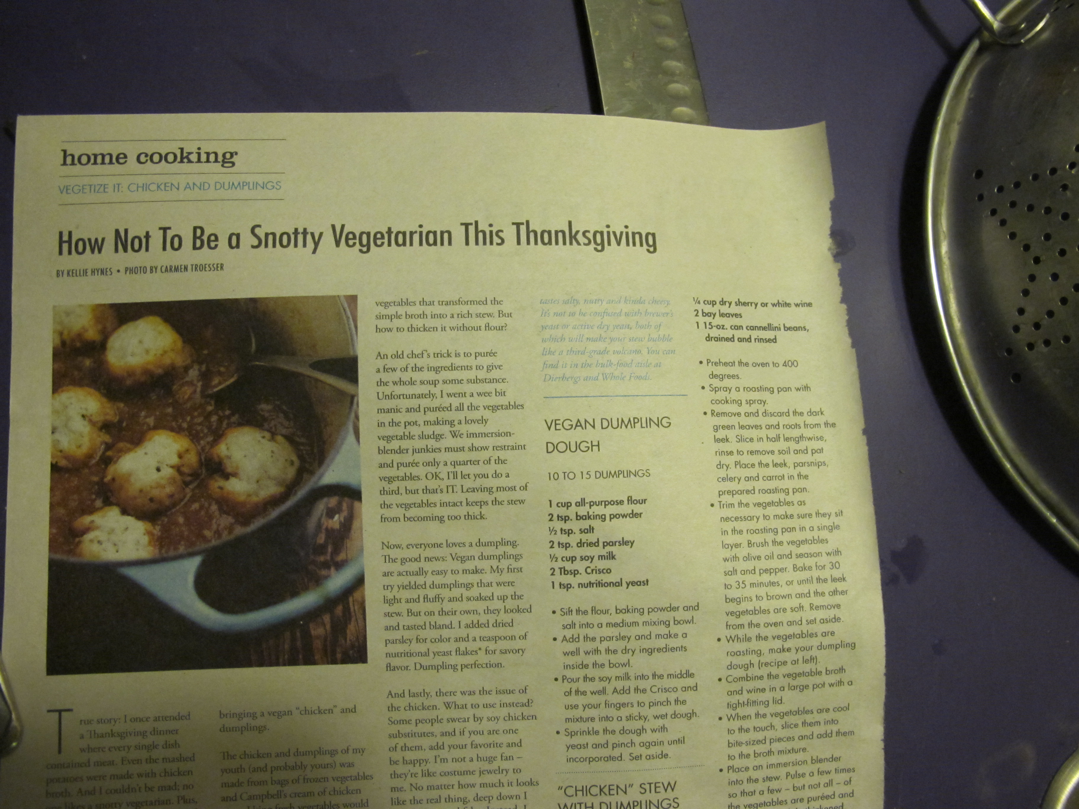 And now I’m faced with a dilemma. You see, I was so planning on being a snotty vegetarian this Thanksgiving. The experience would look great on my resumé, right up there under “Snotty Bicycle Health Freak.” Heck, it may be just what I need to get my resumé noticed.